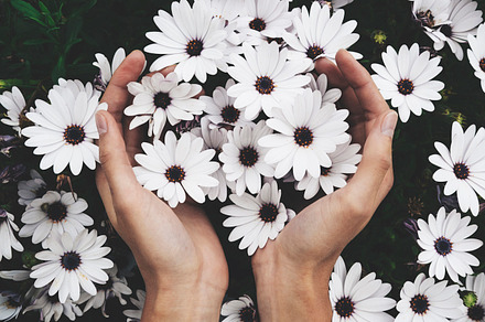 Female hands holding flowers featuring hands, green, and floral