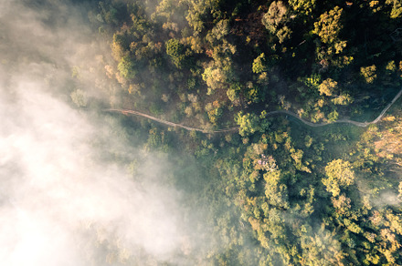 Forest and fog in the morning, high angle view