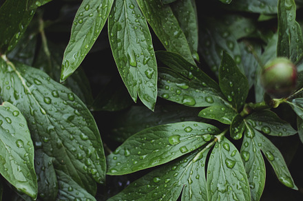 Lush greenery with raindrops