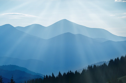 Sunset in the mountains containing blue, mountains, and sunset