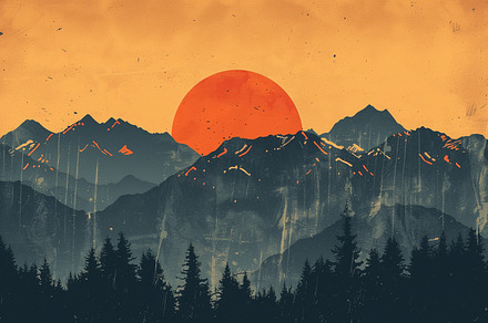 Vintage mountain landscape at sunset – High-quality creative asset from Creative Market. Perfect for your design projects.